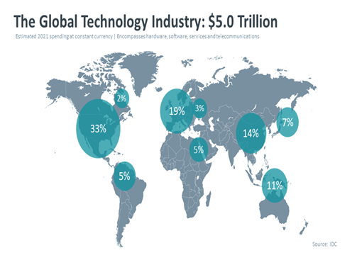 As per IDC Global Technology Spending will Reach 6 Trillion USD Middle East Technology Spending will Reach (0.5 Trillion USD)